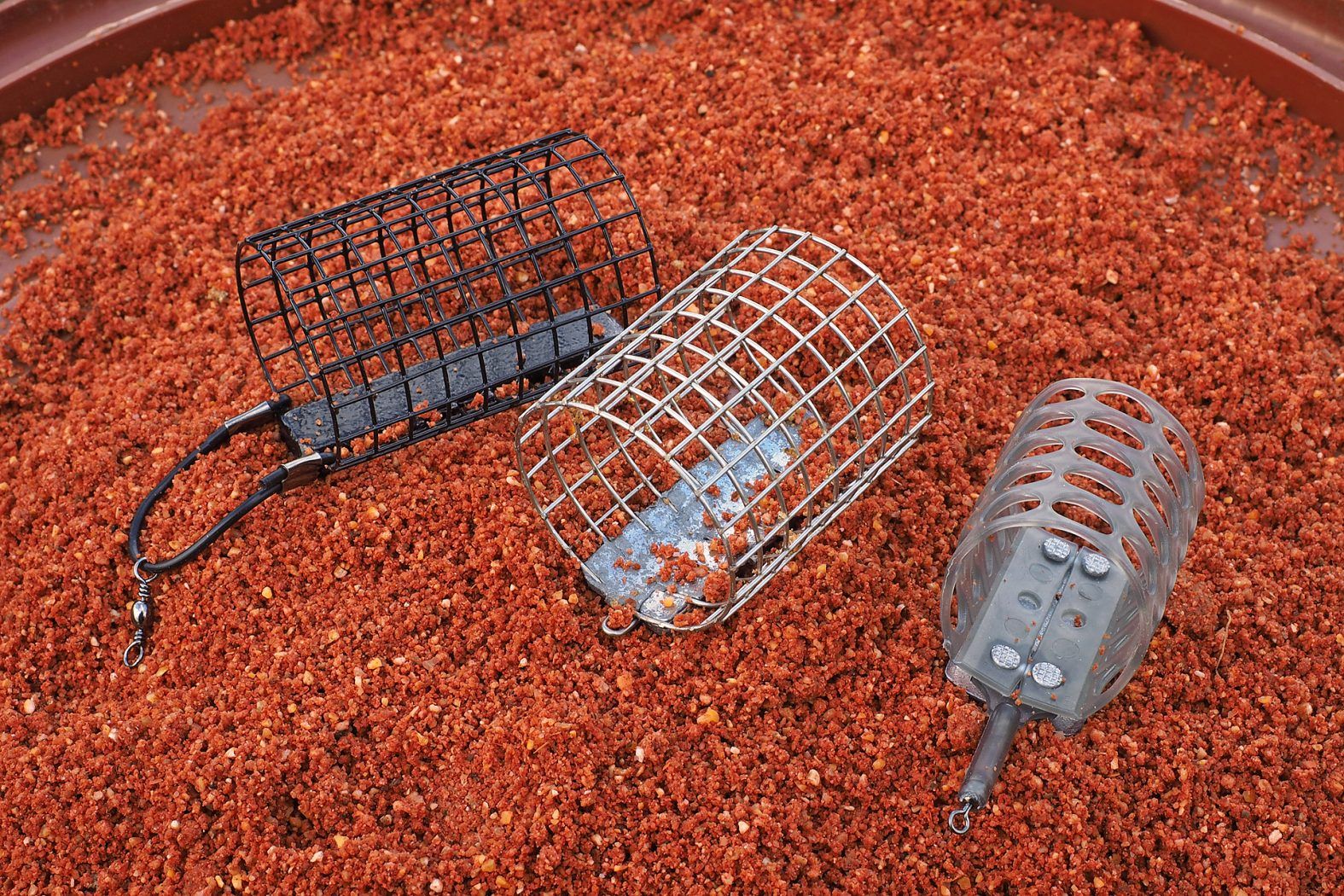 Es gibt zahlreiche Varianten von Futterkörben, die je nach Angelbedingungen zum Einsatz kommen: