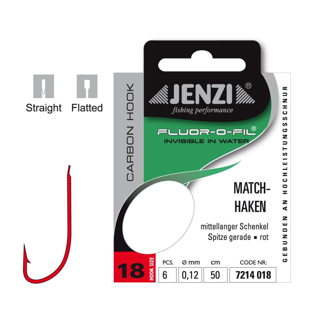 Jenzi Fluor-O-Fil Haken gebunden - Matchhaken - Gr. 18 - Vorfach 0,12mm/50cm - Inhalt 6 Stück