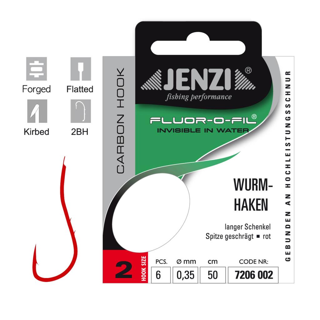 Jenzi Fluor-O-Fil Haken gebunden - Wurmhaken - Gr. 2 - Vorfach 0,35mm/50cm - Inhalt 6 Stück