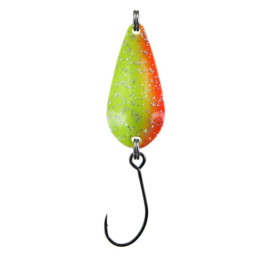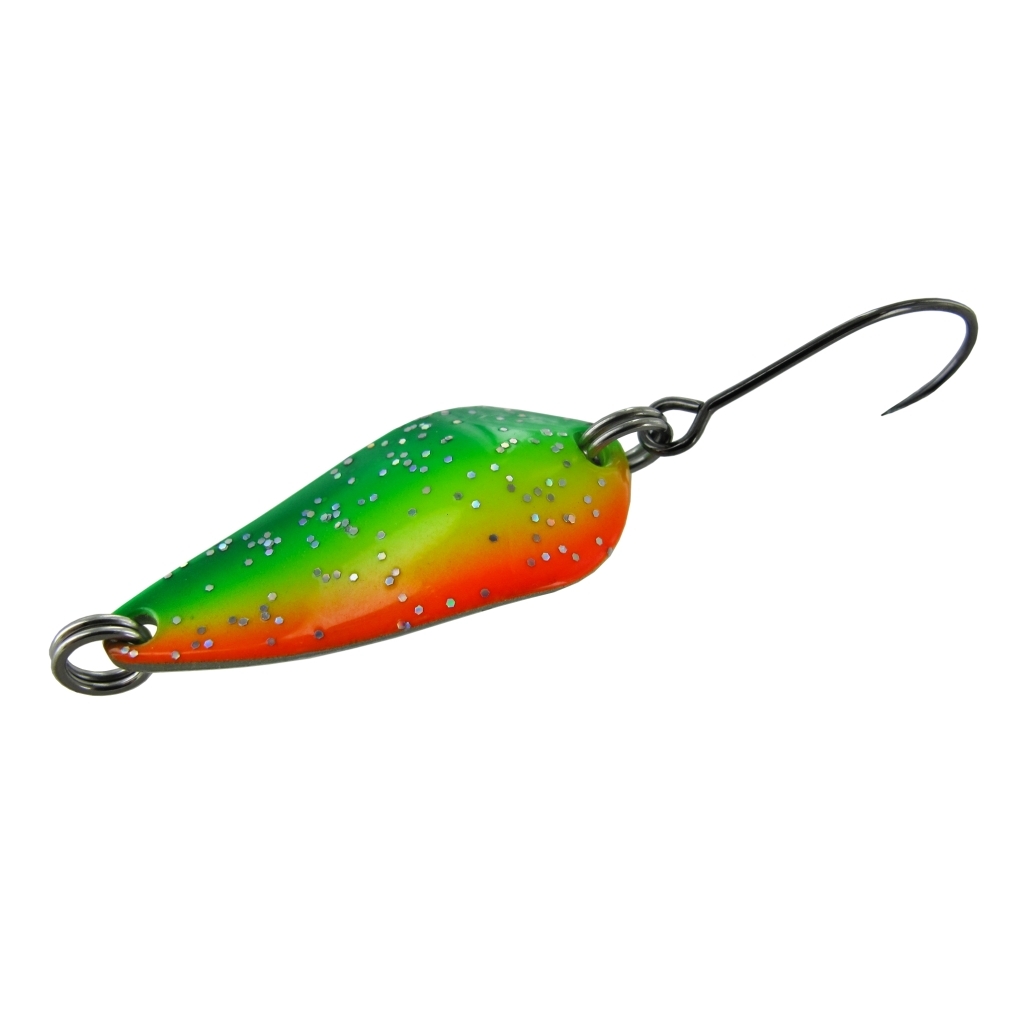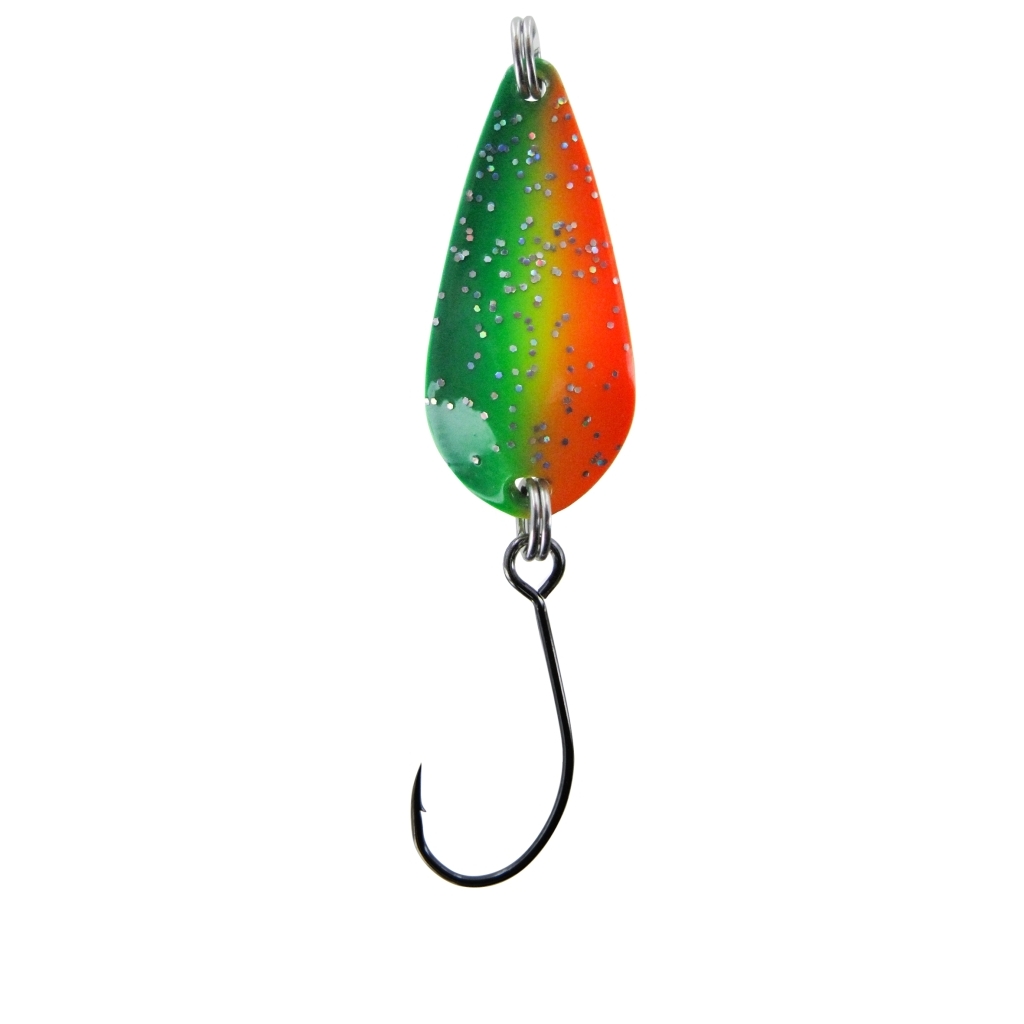 Erhältlich in sechs attraktiven Farben, bietet dieser Forellenblinker eine Vielzahl an Möglichkeiten, um die Neugier der Fische zu wecken. Die glitzernden Farben reflektieren das Licht auf beeindruckende Weise und ziehen die Aufmerksamkeit an, während die UV-Aktivität des Blinkers zusätzliche Reize für die Forellen schafft.