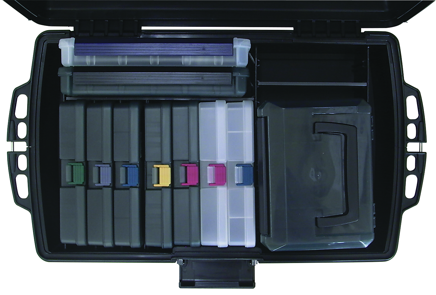 Haben Sie einen Haufen Angelausrüstung und Vorräte, die Sie in Ihrer Garage oder Ihrem Schuppen aufbewahren müssen? Oder vielleicht steht eine große Reise an und du willst einfach nur vorbereitet sein. Dann sind Sie auf der richtigen Seite genau richtig, denn die VS-8050 Tackle Box ist genau das Richtige für Sie! Dieser große Aufbewahrungskoffer aus Kunststoff lässt sich in 3 Abschnitte unterteilen. Der erste ist ein kleiner Schnellzugriffsbereich im Inneren des Deckels mit 4 festen und 4 abnehmbaren Trennwänden.