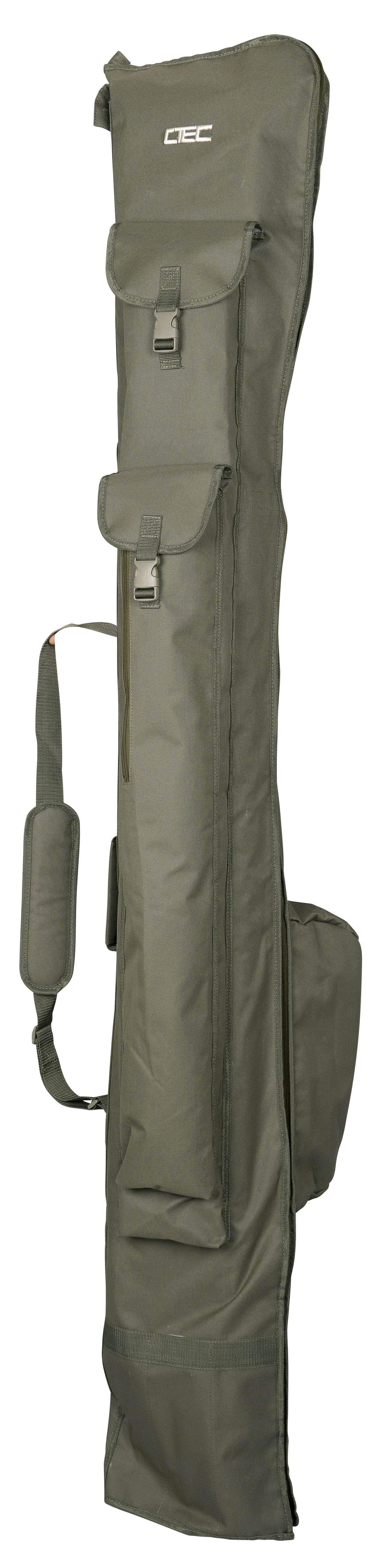 Ein Rutenfutteral zu einem vernünftigen Preis. Bietet Platz für zwei oder drei vormontierte Ruten plus Reserveruten und Dank der Fronttasche auch noch extra Stauraum für Kescher oder Schirm. Auf der Rückseite ist ein weiteres Fach für den Kescherstab. Dieser stabilisiert das ganze Futteral noch zusätzlich und schützt Deine Ruten beim Transport.